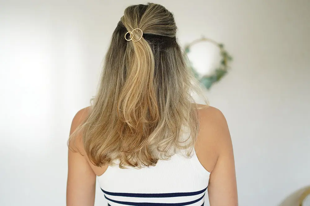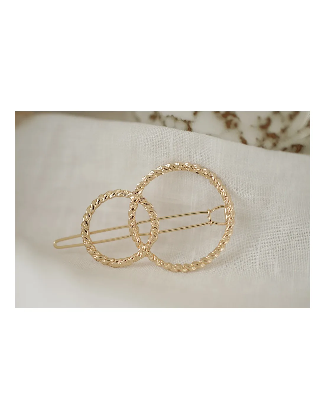 Craque pour la barrette Selma, une barrette composée de cercles dorés entrelacés qui apportent immédiatement du style et de la modernité à ta coiffure.